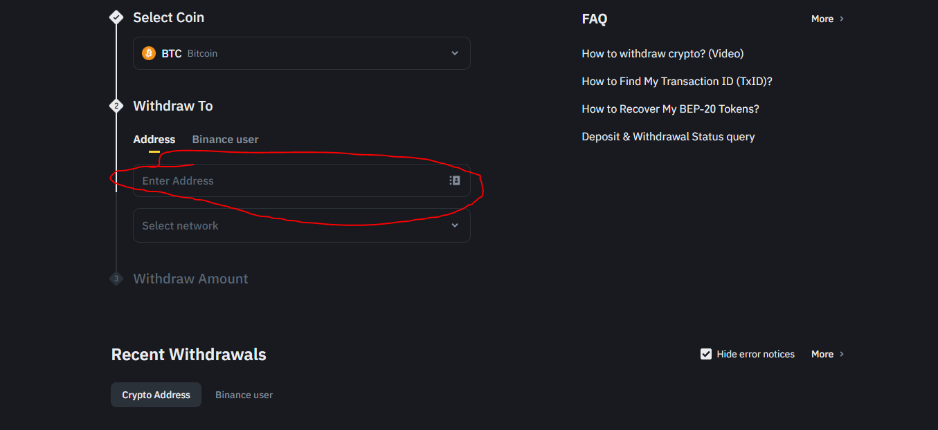 빨간색 동그라미에 아까 복사한 내 비트코인 지갑 주소 붙여넣기 하면된다