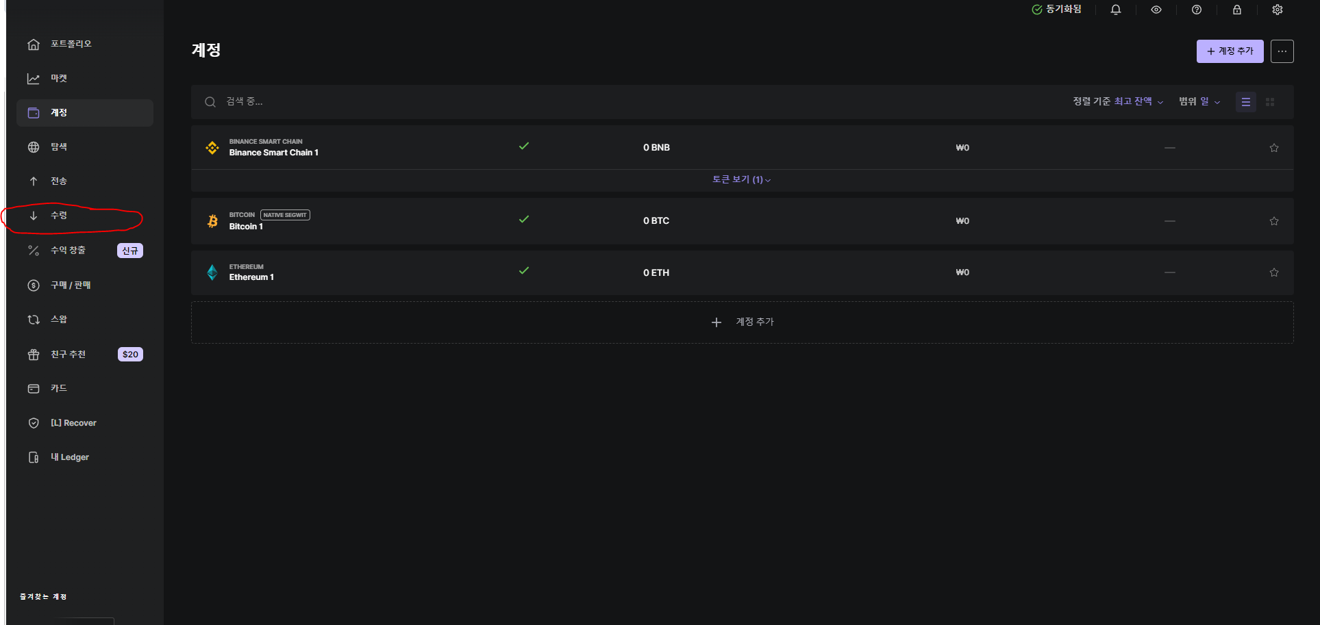 6. Ledger live 앱을켜서 입금받는 주소 확인